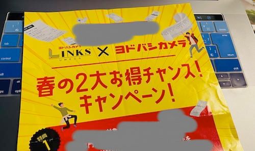 大阪で一番の繁華街にある梅田ヨドバシカメラとその隣にある商業施設のLINKSがキャンペーンをやっていて、その時館内でこのチラシが配られていました。