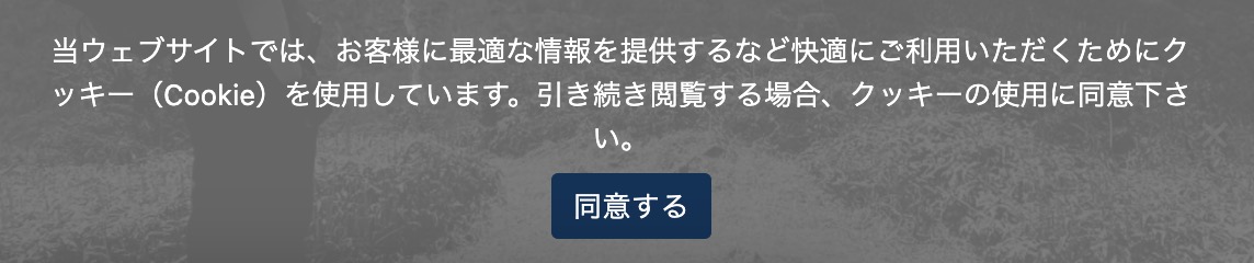 「当サイトでは、お客様に最適な情報を提供するなど快適にご利用いただくためにクッキー(Cookie)を使用しています。引き続き閲覧する場合、クッキーの使用に同意ください。【同意する】