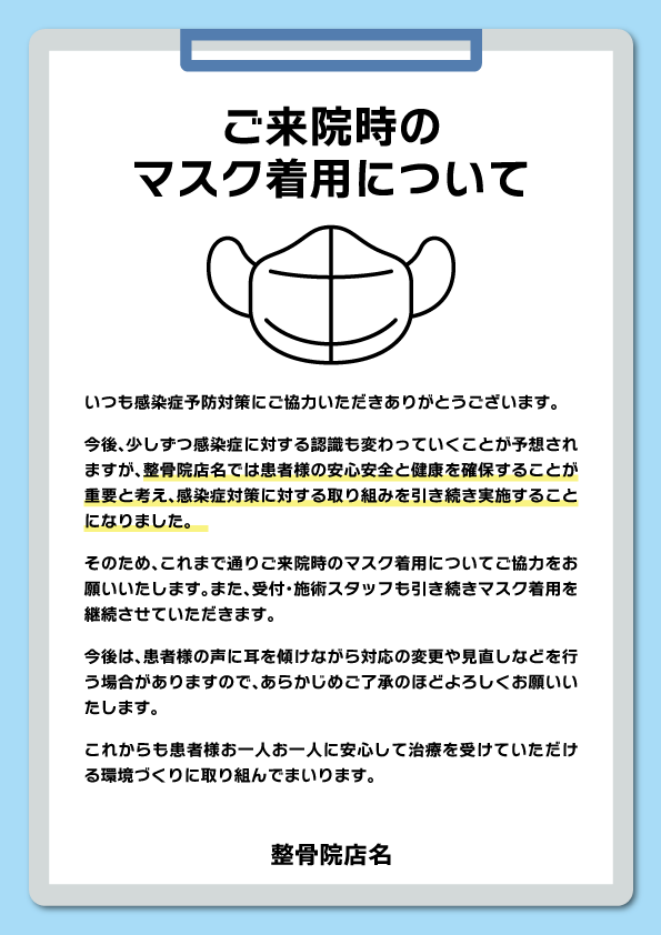 【整骨院・接骨院】3月13日からのマスク着用についてのお願い