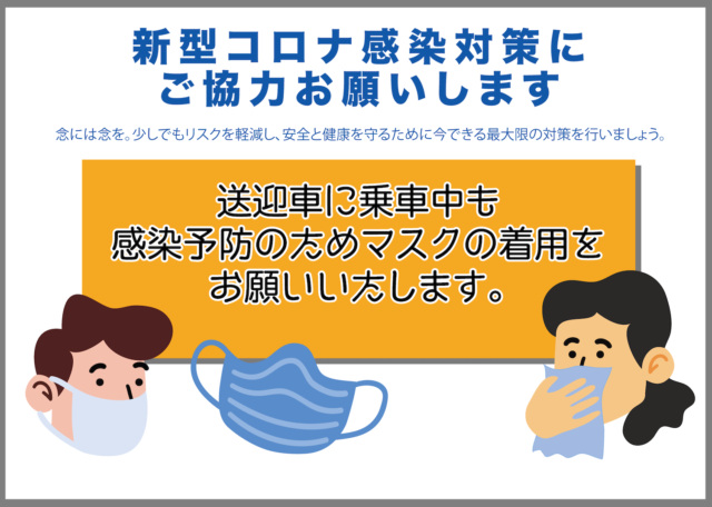 【無料配布】デイサービスの送迎車に乗ってる時もみんなでマスクを着けようPOP