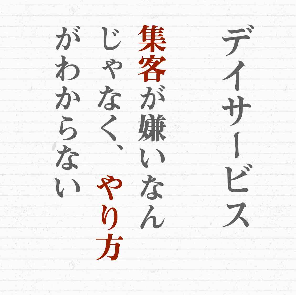 「デイサービス集客のヒントが見つかる!」と話題の”介護集客セミナー動画(90分)”をプレゼント!さらに、完全書き下ろしの”集客レポート(14,000文字)”も無料配布中です。デイサービスや介護施設の集客力アップに役立つヒントが盛りだくさんの内容です。ぜひこの機会にセミナー動画&レポートをGETしてください。
