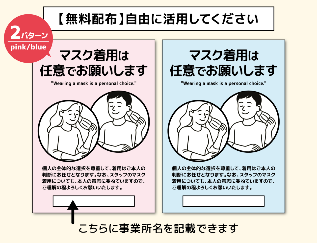 【お知らせ】「マスク着用は任意です」A3ポスターデータ配布します